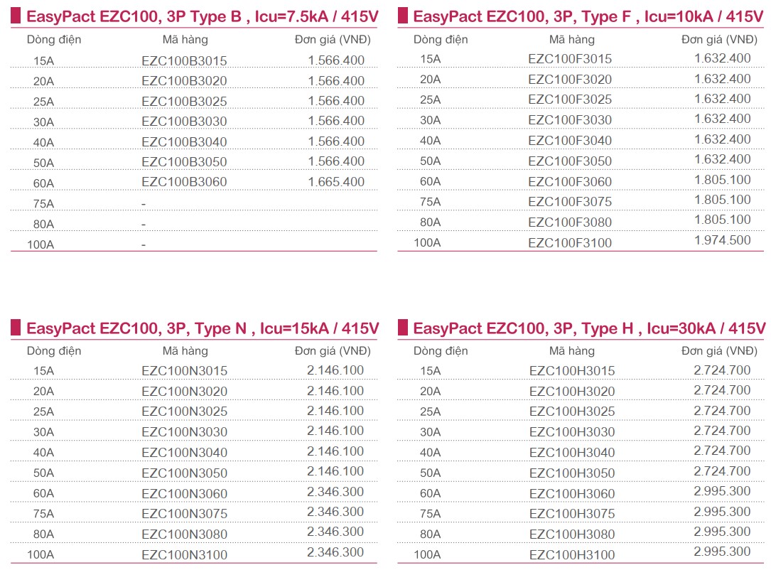 Dòng cắt ngắn mạch tại 415V: 7.5,10,15, 30kA